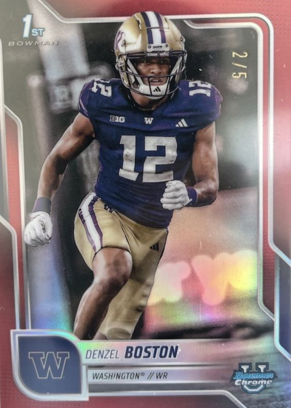 Recent Sales of Denzel Boston 2025 Bowman Chrome University #34 Red Refractor /5 (1st) Raw