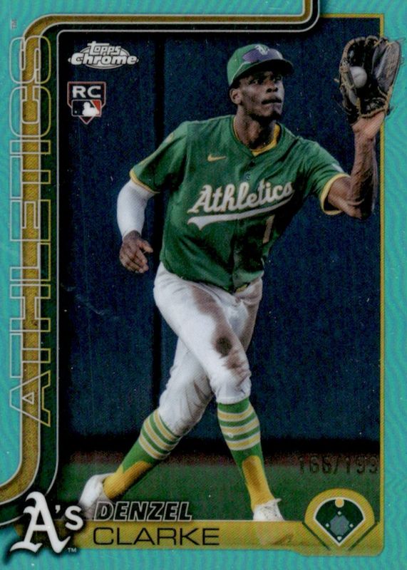 This card is 1 of 52 Denzel Clarke's card variations in the 2025 Topps Chrome Update set being tracked by Sports Card Investor, including Base, Geometric Refractor, Negative Refractor, Prism Refractor, and RayWave Refractor.