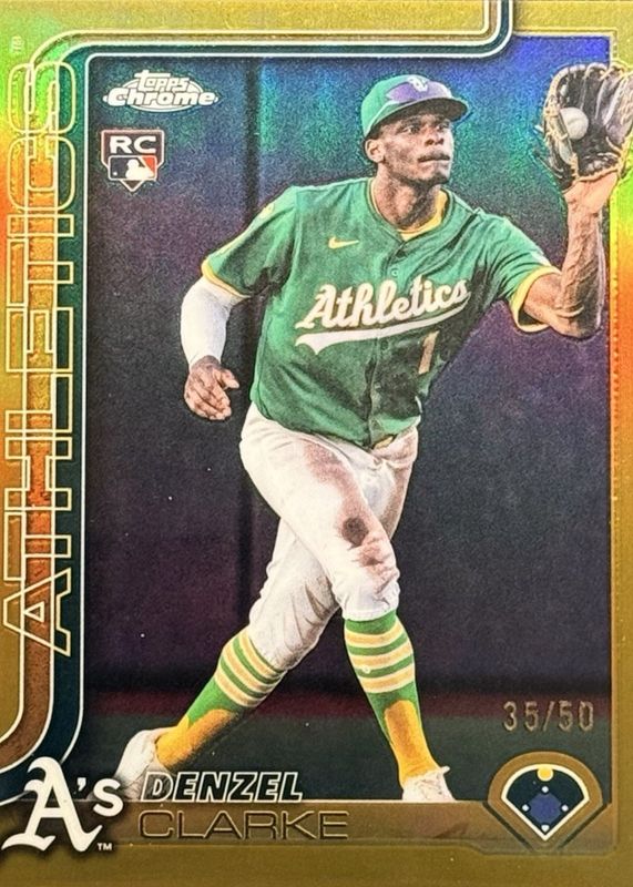This card is 1 of 52 Denzel Clarke's card variations in the 2025 Topps Chrome Update set being tracked by Sports Card Investor, including Base, Geometric Refractor, Negative Refractor, Prism Refractor, and RayWave Refractor.