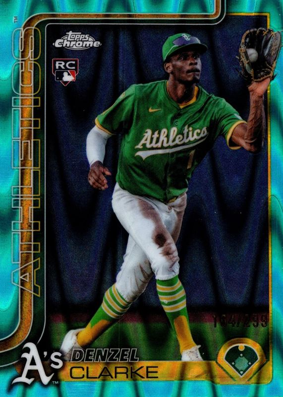 The Denzel Clarke 2025 Topps Chrome Update #USC15 Teal RayWave Refractor /299 Rookie card in Raw condition has moved up $4.01 (+202%) in the last 30 days and was last sold for $6.00 .