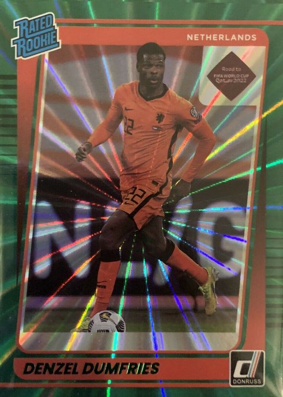 2021 Donruss Road to Qatar Rated Holo Green Laser Denzel Dumfries #178 Rookie RC