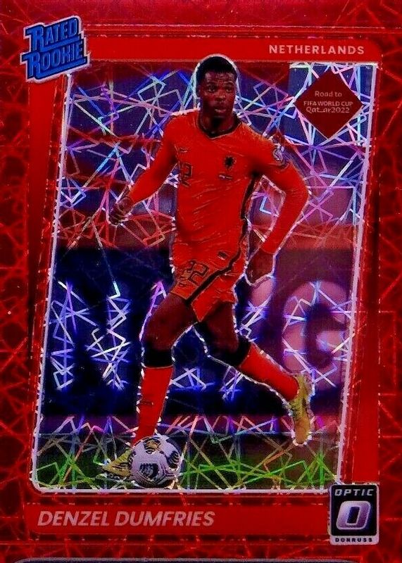 2021-22 Donruss Road to Qatar Optic Red Velocity Prizm Denzel Dumfries Rookie RC
