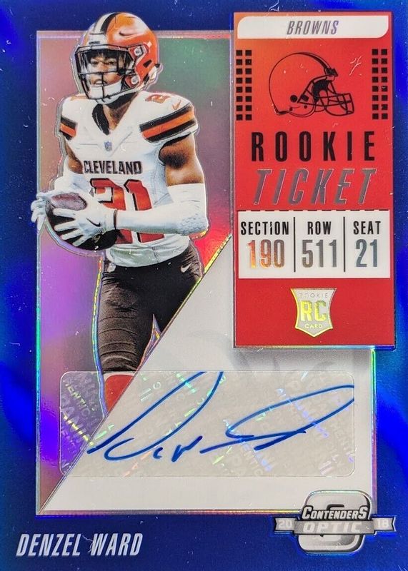 2018 Contenders Optic DENZEL WARD Ticket Blue Holo Prizm Auto /25 RC Browns #143