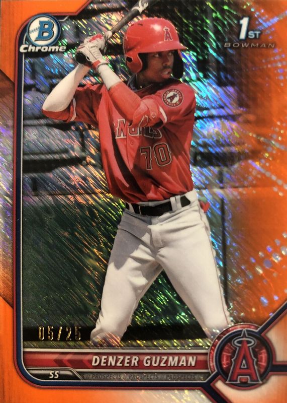 Auctions Ending Soon for Denzer Guzman 2022 Bowman #BCP-138 Chrome Prospects - Orange Shimmer Refractor /25 (1st) RAW