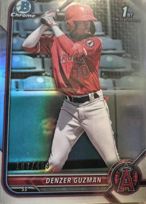 The Denzer Guzman 2022 Bowman #BCP-138 Chrome Prospects - Refractor /499 (1st) card in Raw condition has not changed in price in the last 30 days and was last sold for $1.99 .