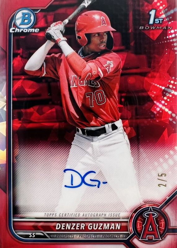 Best Prices Available For Sale of Denzer Guzman 2022 Bowman Sapphire Edition #BSPA-DG Chrome Prospect Auto - Red /5 (1st)