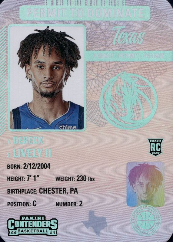 Dereck Lively II 2023-24 Panini Contenders Permit To Dominate Rookie SP Case Hit