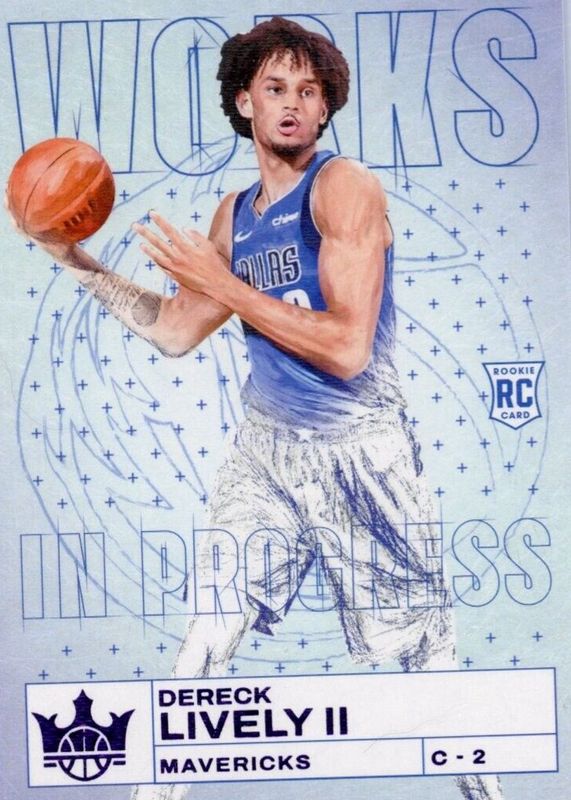 The Dereck Lively II 2023 Court Kings #30 Works in Progress - Violet /49 Rookie card in Raw condition has not changed in price in the last 30 days and was last sold for $24.00 .