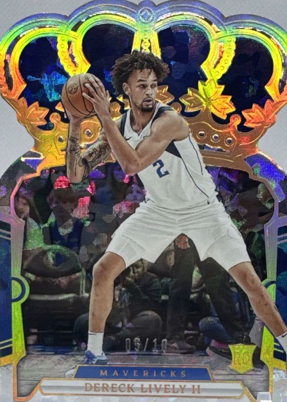 The Dereck Lively II 2023 Crown Royale #5 Gold Crystal /10 Rookie card in Raw condition has not changed in price in the last 30 days and was last sold for $20.00 .
