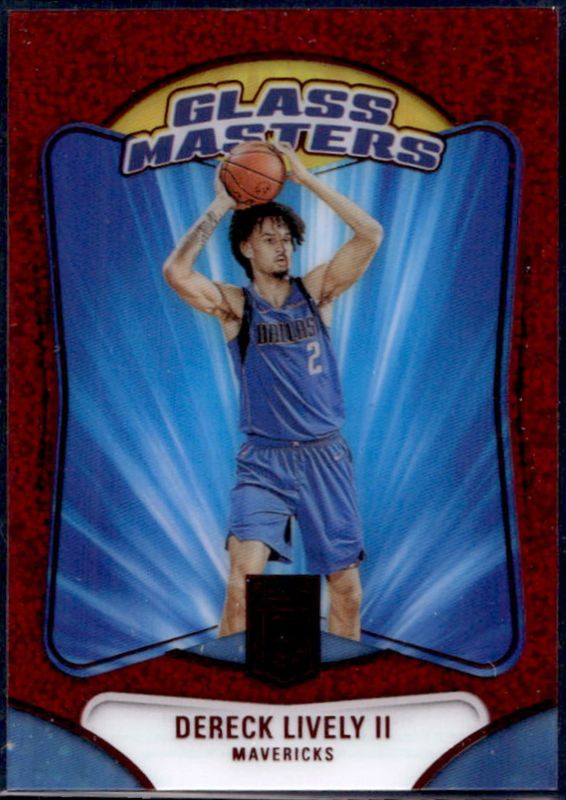 The Dereck Lively II 2023 Elite #10 Glass Masters - International Red Rookie card is 1 of 48 Dereck Lively II's card variations in the 2023 Elite set being tracked by Sports Card Investor, including Base, Aspirations (/98), International, International Hyper Red & Green, and Orange.