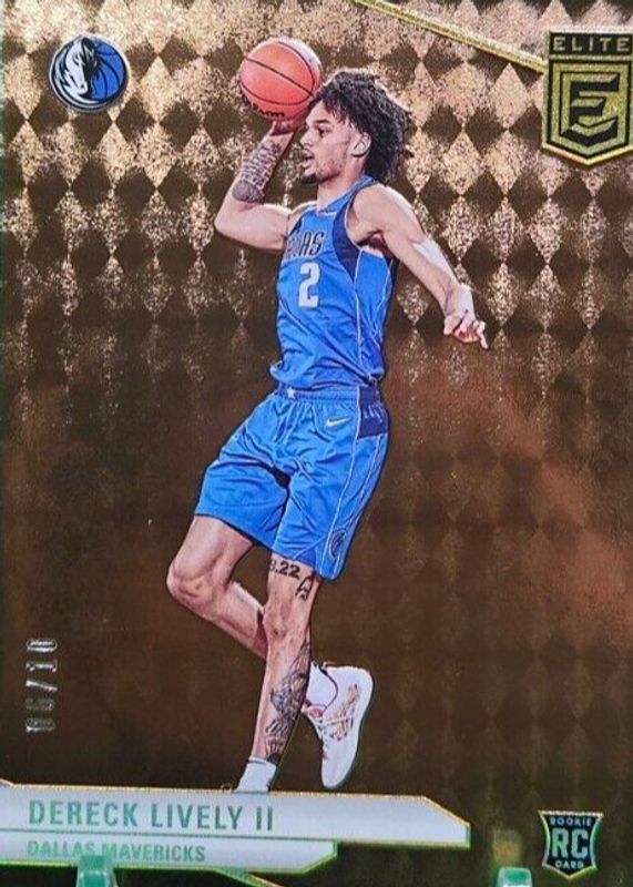 The Dereck Lively II 2023 Elite #229 Gold /10 Rookie card in Raw condition has not changed in price in the last 30 days and was last sold for $59.99 .