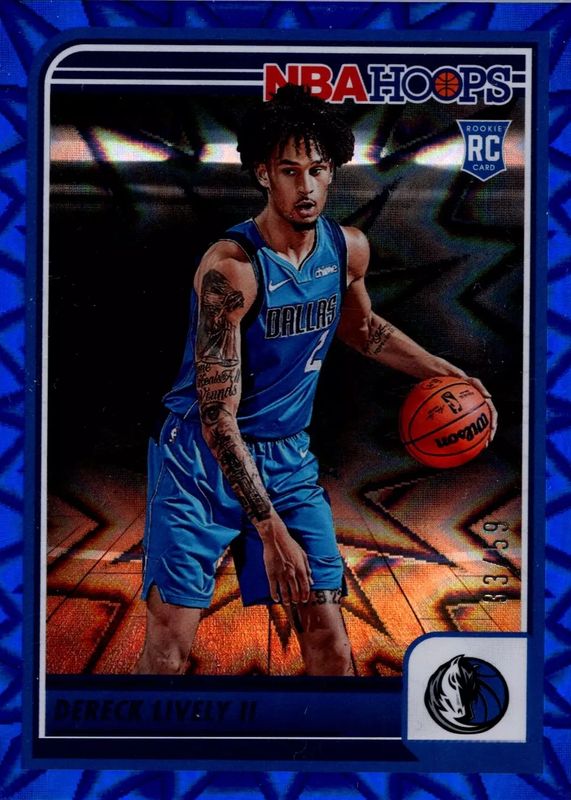 The Dereck Lively II 2023 Hoops #241 Blue Explosion /59 Rookie card in Raw condition has not changed in price in the last 30 days and was last sold for $12.50 .