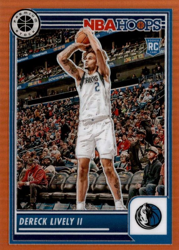2023-24 NBA Hoops Premium Stock #253 Dereck Lively II Mavericks Orange RC /299