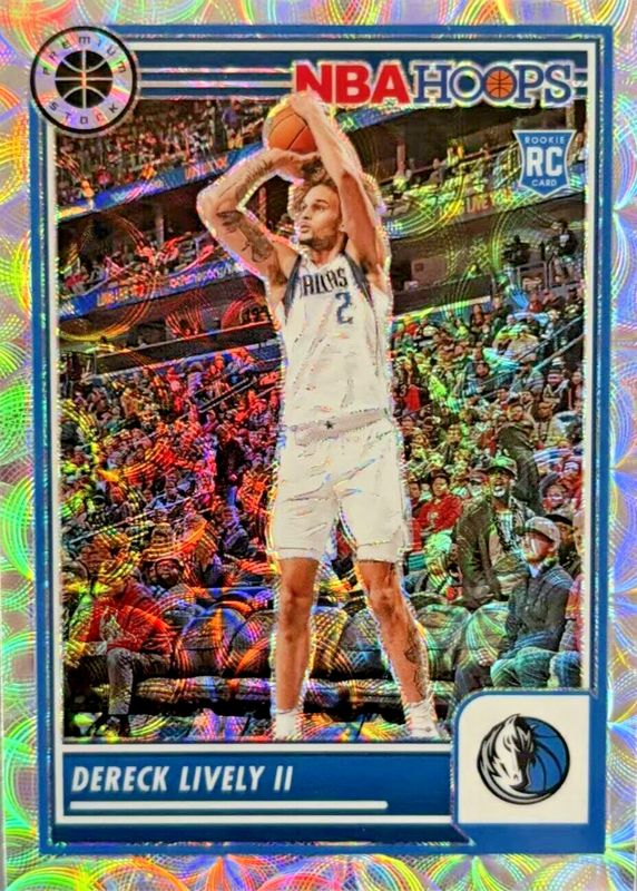 The Dereck Lively II 2023 Hoops Premium Stock #253 Premium Rookie card in Raw condition has not changed in price in the last 30 days and was last sold for $7.65 .