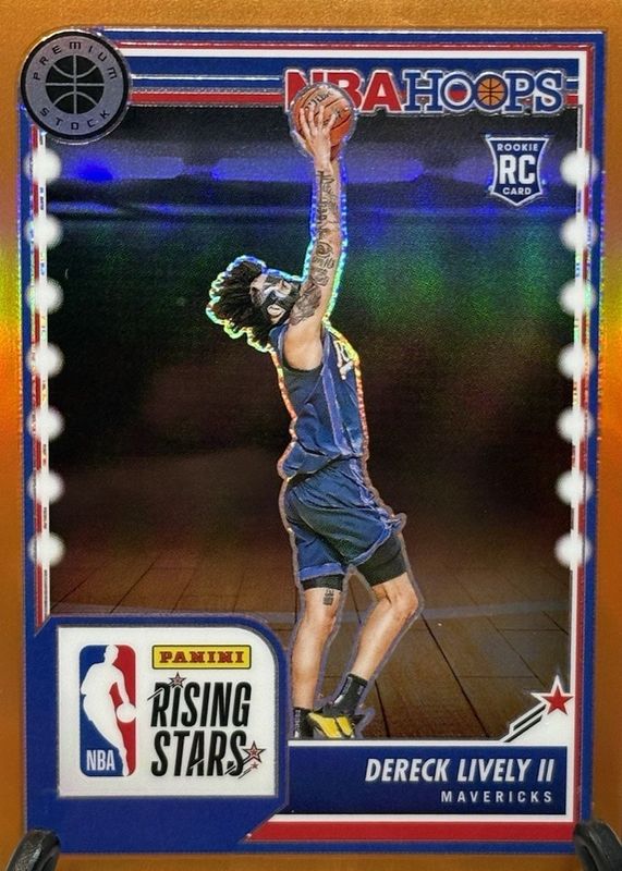 The Dereck Lively II 2023 Hoops Premium Stock #291 Rising Stars Rookie card in Raw condition has not changed in price in the last 30 days and was last sold for $0.89 .