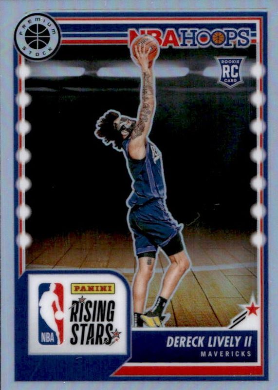 The Dereck Lively II 2023 Hoops Premium Stock #291 Rising Stars - Silver Rookie card in Raw condition has moved up $0.01 (+1.0%) in the last 30 days and was last sold for $1.00 .