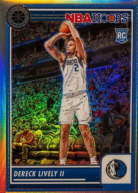 This card is 1 of 100 Dereck Lively II's card variations in the 2023 Hoops Premium Stock set being tracked by Sports Card Investor, including Base, Rising Stars, Disco, Ice, and Multi Wave.