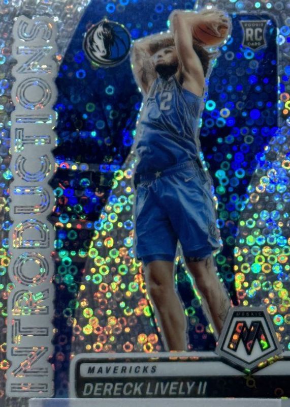 This card is 1 of 155 Dereck Lively II's card variations in the 2023 Mosaic set being tracked by Sports Card Investor, including #248 Base, #265 NBA Debut, #248 Fast Break, #248b Fast Break, and #248 Green.