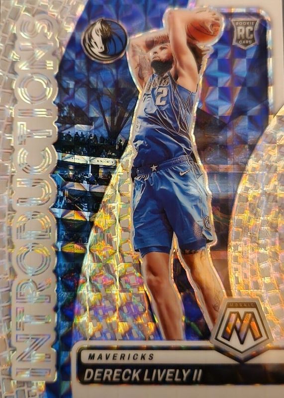 The Dereck Lively II 2023 Mosaic #1 Introductions - White /25 Rookie card in Raw condition has not changed in price in the last 30 days and was last sold for $28.00 .