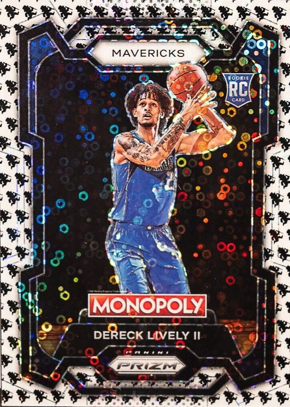 The Dereck Lively II 2023 Prizm Monopoly #24 Monopoly Man Black & White Rookie card in Raw condition has not changed in price in the last 30 days and was last sold for $4.01 .