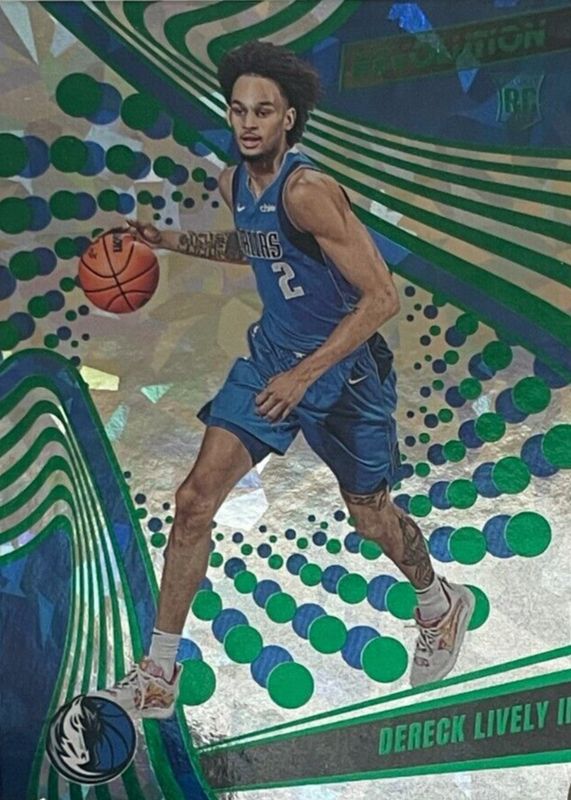 The Dereck Lively II 2023 Revolution #120 Chinese New Year Emerald /88 Rookie card in Raw condition has not changed in price in the last 30 days and was last sold for $5.01 .