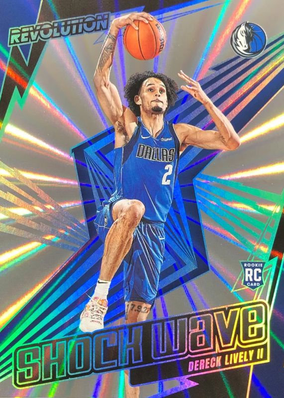 The Dereck Lively II 2023 Revolution #11 Shock Wave - Sunburst /75 Rookie card in Raw condition has not changed in price in the last 30 days and was last sold for $7.00 .