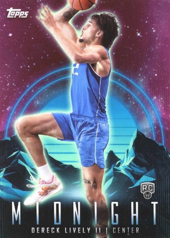 This card is 1 of 38 Dereck Lively II's card variations in the 2023 Topps Midnight set being tracked by Sports Card Investor, including Base, Moon Beam, Morning /149, Twilight /99, and Dusk /75.