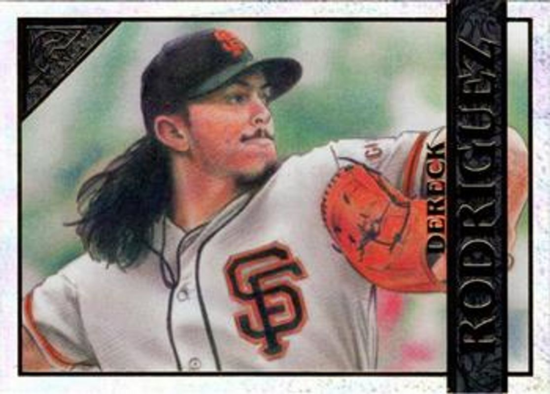 The Dereck Rodriguez 2020 Topps Gallery #20 Rainbow Foil card is 1 of 18 Dereck Rodriguez's card variations in the 2020 Topps Gallery set being tracked by Sports Card Investor, including Base, Artist's Proofs, Wood, Private Issue /250, and Green /99.