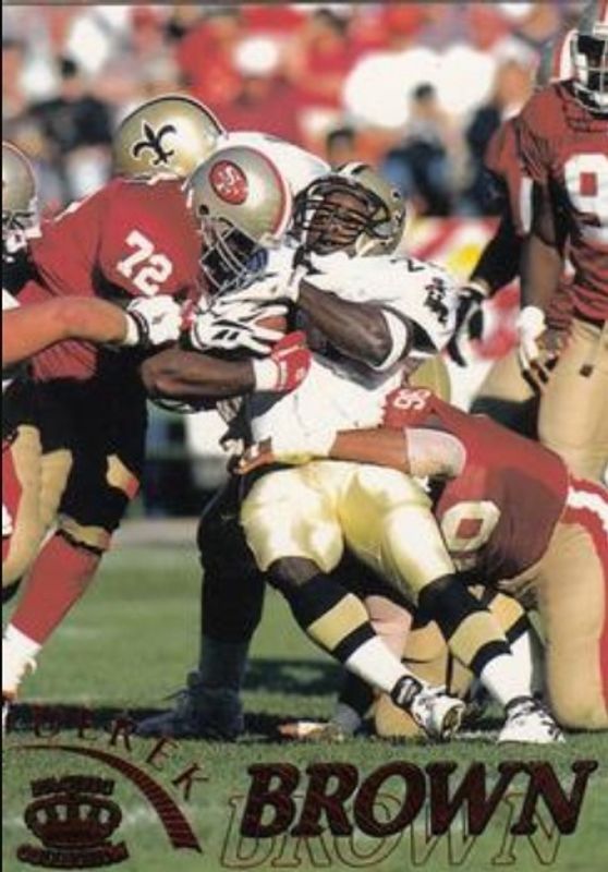 The Derek Brown 1996 Pacific Gridiron #77 Red card is 1 of 5 Derek Brown's card variations in the 1996 Pacific Gridiron set being tracked by Sports Card Investor, including Base, Copper, Gold, and Platinum.