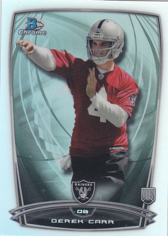 This card is 1 of 2 Derek Carr's card variations in the 2014 Bowman Chrome set being tracked by Sports Card Investor, including Base.