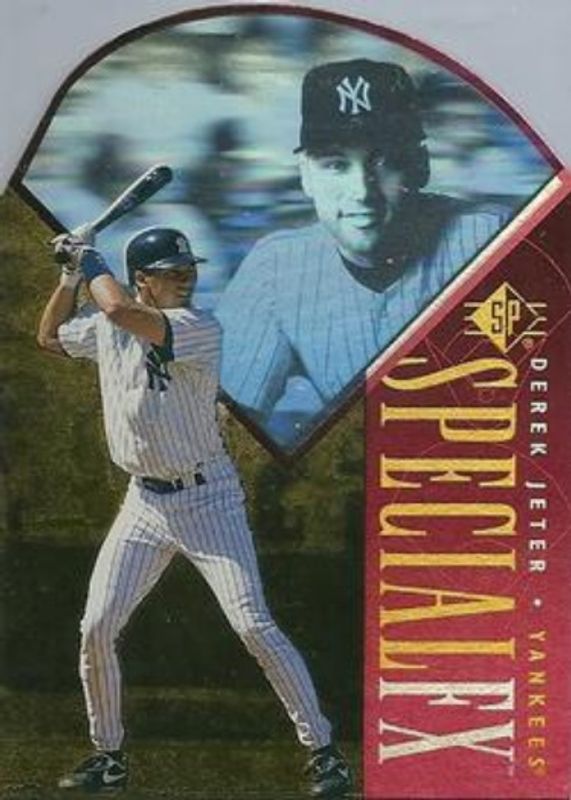 The Derek Jeter 1996 SP #48 Special FX Red die-cut card is 1 of 5 Derek Jeter's card variations in the 1996 SP set being tracked by Sports Card Investor, including Base, Marquee Matchups, Marquee Matchups die-cut, and Special FX.