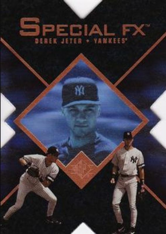 The Derek Jeter 1997 SP #16 Special FX card is 1 of 5 Derek Jeter's card variations in the 1997 SP set being tracked by Sports Card Investor, including Base, Inside Info, Marquee Matchups, and Game Film /500.