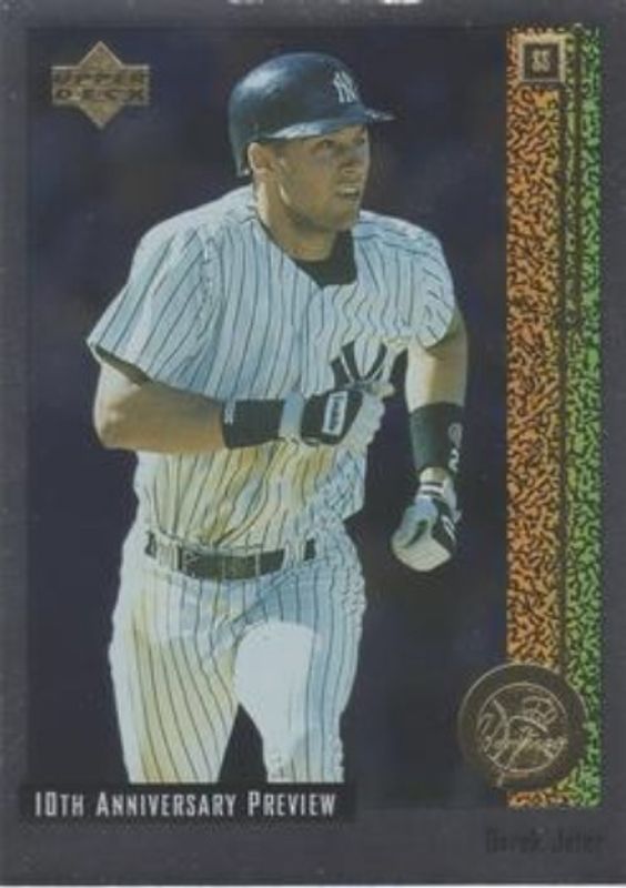 The Derek Jeter 1998 Upper Deck #41 10th Anniversary Preview card is 1 of 12 Derek Jeter's card variations in the 1998 Upper Deck set being tracked by Sports Card Investor, including #450 Base, #618 Base, #141 Base, #41 10th Anniversary Preview Edition Retail, and #AS11 All Star Credentials.