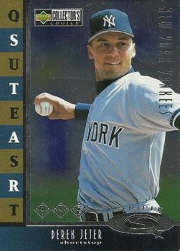 The Derek Jeter 1998 Upper Deck Collector's Choice #SQ6 StarQuest Triple card is 1 of 8 Derek Jeter's card variations in the 1998 Upper Deck Collector's Choice set being tracked by Sports Card Investor, including Mini Bobbing Heads, Series Two Blaster Jumbo 5x7, StarQuest, StarQuest Double, and StarQuest Single.
