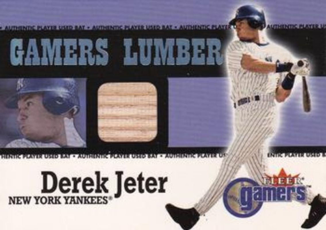 The Derek Jeter 2000 Fleer Gamers Gamers Lumber card is 1 of 8 Derek Jeter's card variations in the 2000 Fleer Gamers set being tracked by Sports Card Investor, including #2 Base, #117 Base, #117 Extra, #2 Extra, and #4CG Change the Game.