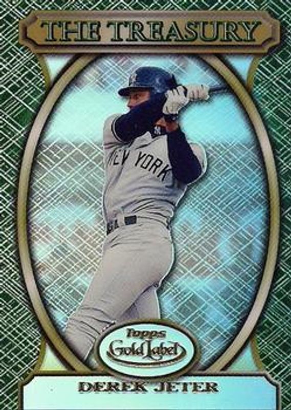 The Derek Jeter 2000 Topps Gold Label #T2 The Treasury card is 1 of 13 Derek Jeter's card variations in the 2000 Topps Gold Label set being tracked by Sports Card Investor, including #22 Base, #22 Class 2, #22 Class 3, #PP2 Pre Production, and #PP3 Pre Production.