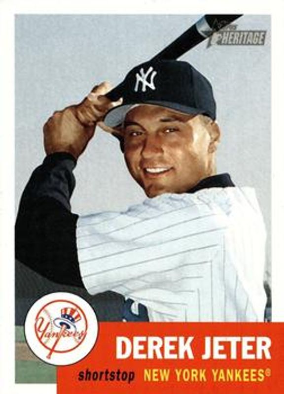 The Derek Jeter 2002 Topps Heritage #114 Base card is 1 of 3 Derek Jeter's card variations in the 2002 Topps Heritage set being tracked by Sports Card Investor, including New Age Performers, and Chrome /553.