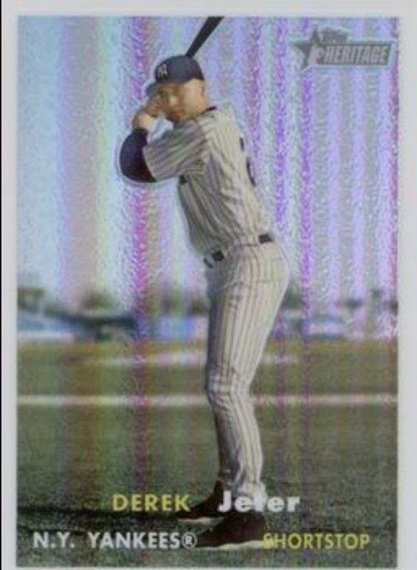 The Derek Jeter 2006 Topps Heritage #109 Chrome Refractor /557 card is 1 of 5 Derek Jeter's card variations in the 2006 Topps Heritage set being tracked by Sports Card Investor, including #23 Base, #23b Base, #109 Chrome /1957, and #109 Chrome Black Refractor /57.