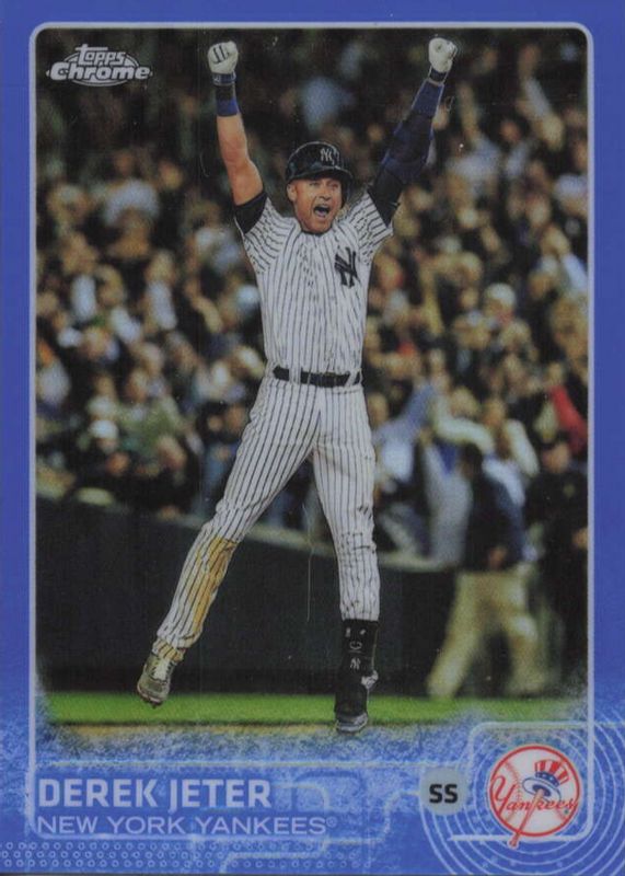 This card is 1 of 11 Derek Jeter's card variations in the 2015 Topps Chrome set being tracked by Sports Card Investor, including Pink Refractor, Prism Refractor, Refractor, Sepia Refractor, and Purple Refractor /250.