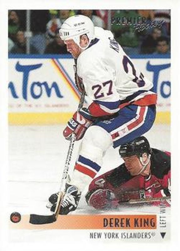 The Derek King 1994 Topps Premier #304 Base card is 1 of 2 Derek King's card variations in the 1994 Topps Premier set being tracked by Sports Card Investor, including Special Effects.
