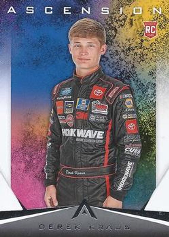 The Derek Kraus 2020 Chronicles NASCAR #10 Ascension card is 1 of 26 Derek Kraus' card variations in the 2020 Chronicles NASCAR set being tracked by Sports Card Investor, including Phoenix, Phoenix Holo, Spectra, Ascension Autographs /199, and Ascension Blue /199.