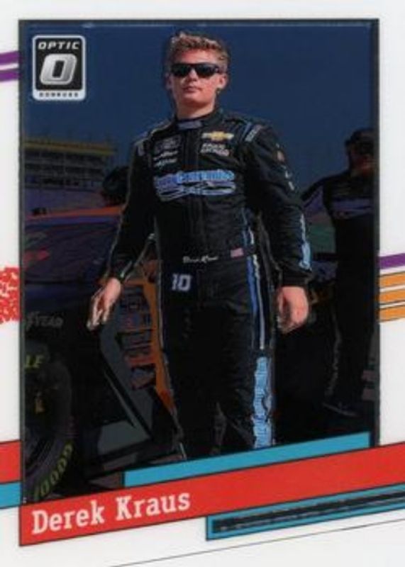 The Derek Kraus 2024 Donruss NASCAR #129 Optic card is 1 of 34 Derek Kraus' card variations in the 2024 Donruss NASCAR set being tracked by Sports Card Investor, including Base, Optic Black Pandora, Optic Blue Velocity, Optic Holo, and Optic Orange Velocity.