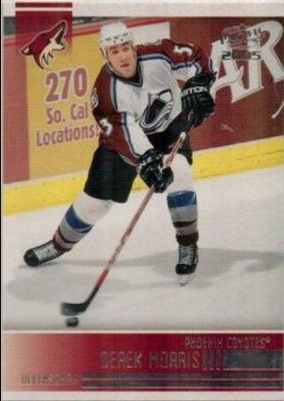 The Derek Morris 2004 Pacific #204 Base card is 1 of 3 Derek Morris' card variations in the 2004 Pacific set being tracked by Sports Card Investor, including Red, and Blue /250.