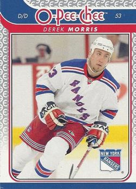 The Derek Morris 2009 O-Pee-Chee #363 Base card is 1 of 7 Derek Morris' card variations in the 2009 O-Pee-Chee set being tracked by Sports Card Investor, including #716 Base, #363 Rainbow, #716 Rainbow, #363 Retro, and #363 Retro Blank Back.