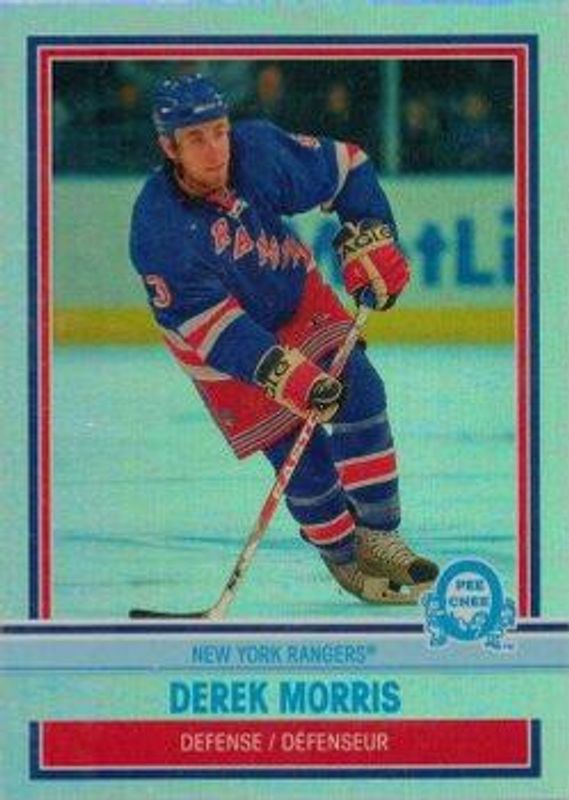 The Derek Morris 2009 O-Pee-Chee #363 Retro Rainbow /100 card is 1 of 7 Derek Morris' card variations in the 2009 O-Pee-Chee set being tracked by Sports Card Investor, including #363 Base, #716 Base, #363 Rainbow, #716 Rainbow, and #363 Retro.