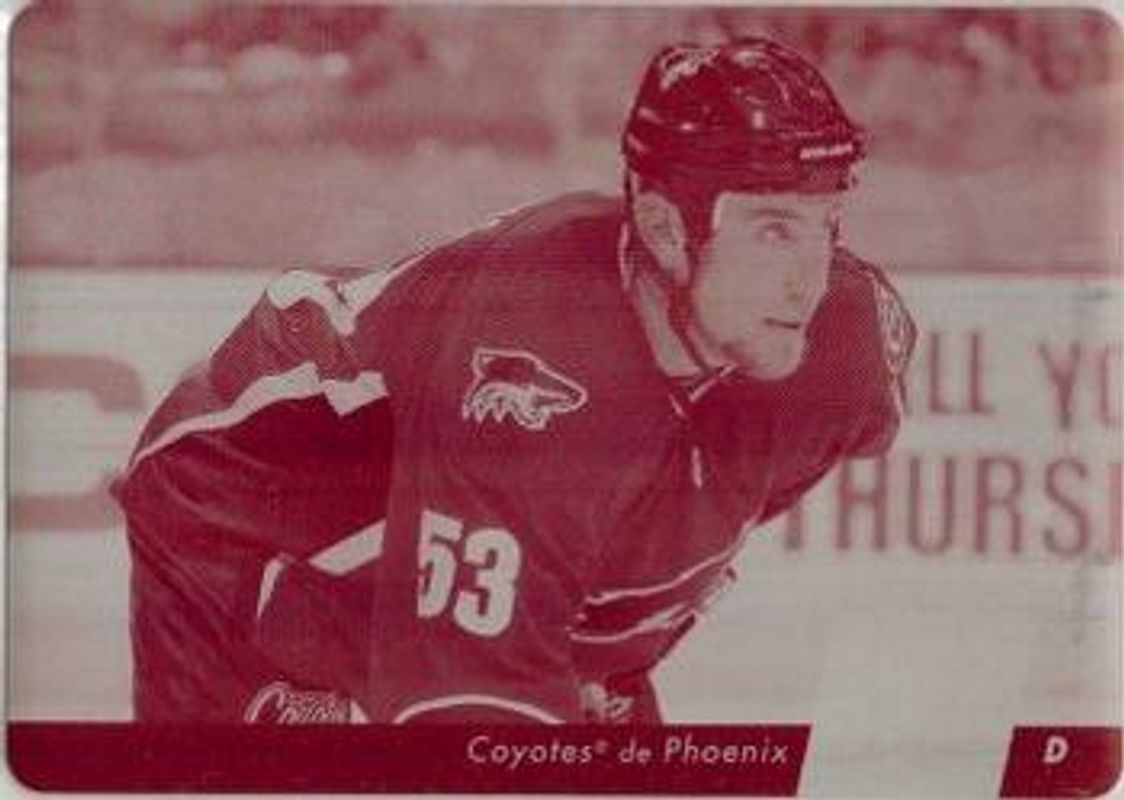 The Derek Morris 2010 Upper Deck French #54 Printing Plates Magenta /1 card is 1 of 6 Derek Morris' card variations in the 2010 Upper Deck French set being tracked by Sports Card Investor, including Base, Red /25, Printing Plates Black /1, Printing Plates Cyan /1, and Printing Plates Yellow /1.