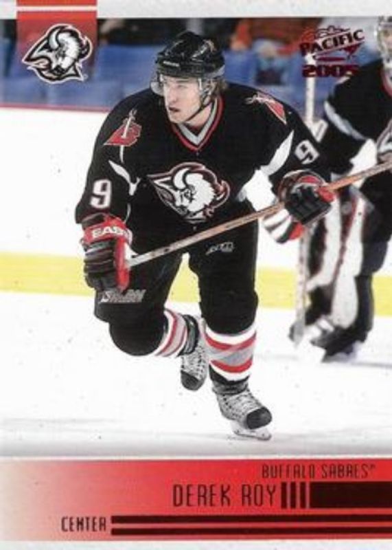 The Derek Roy 2004 Pacific #35 Red card is 1 of 3 Derek Roy's card variations in the 2004 Pacific set being tracked by Sports Card Investor, including Base, and Blue /250.
