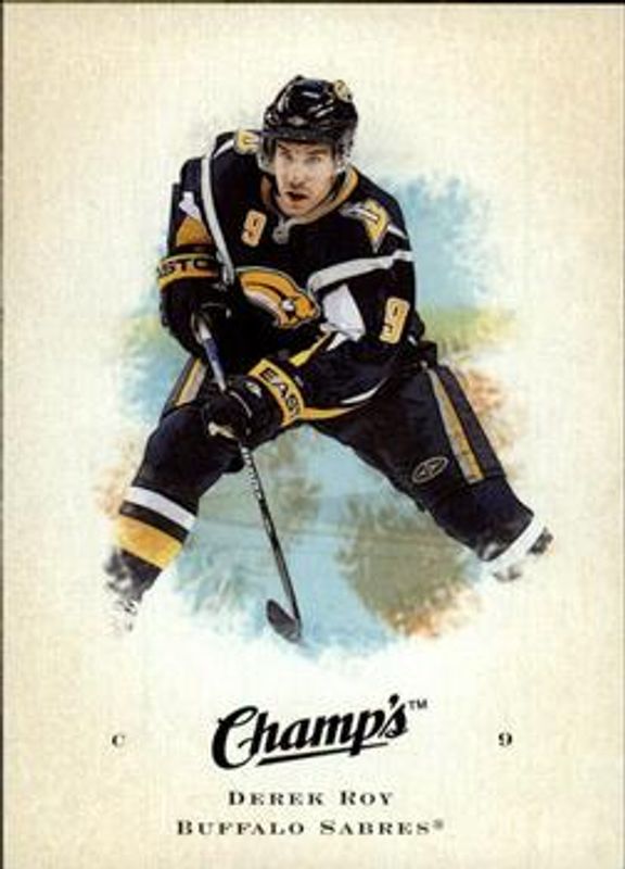The Derek Roy 2008 Upper Deck Champ's #26 Base card is 1 of 6 Derek Roy's card variations in the 2008 Upper Deck Champ's set being tracked by Sports Card Investor, including Mini, Mini Blue Backs, Mini Brown Backs, Mini Purple Backs, and Mini Red Backs.