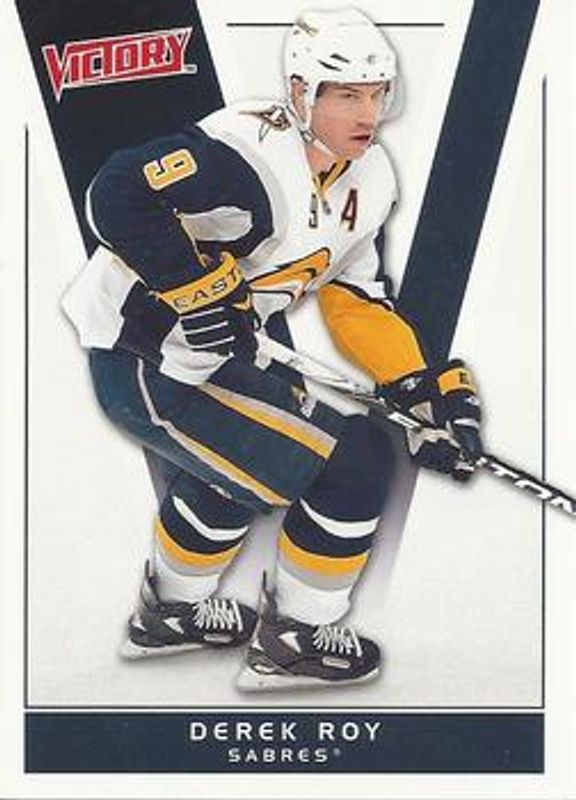 The Derek Roy 2010 Upper Deck Victory #22 Base card is 1 of 5 Derek Roy's card variations in the 2010 Upper Deck Victory set being tracked by Sports Card Investor, including Black, Gold, Red, and Game Breakers.