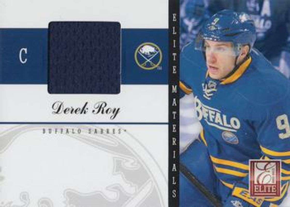 The Derek Roy 2011 Elite #13 Materials card is 1 of 4 Derek Roy's card variations in the 2011 Elite set being tracked by Sports Card Investor, including Materials Autographs /25, Materials Patches /15, and Materials Patches Autographs /5.